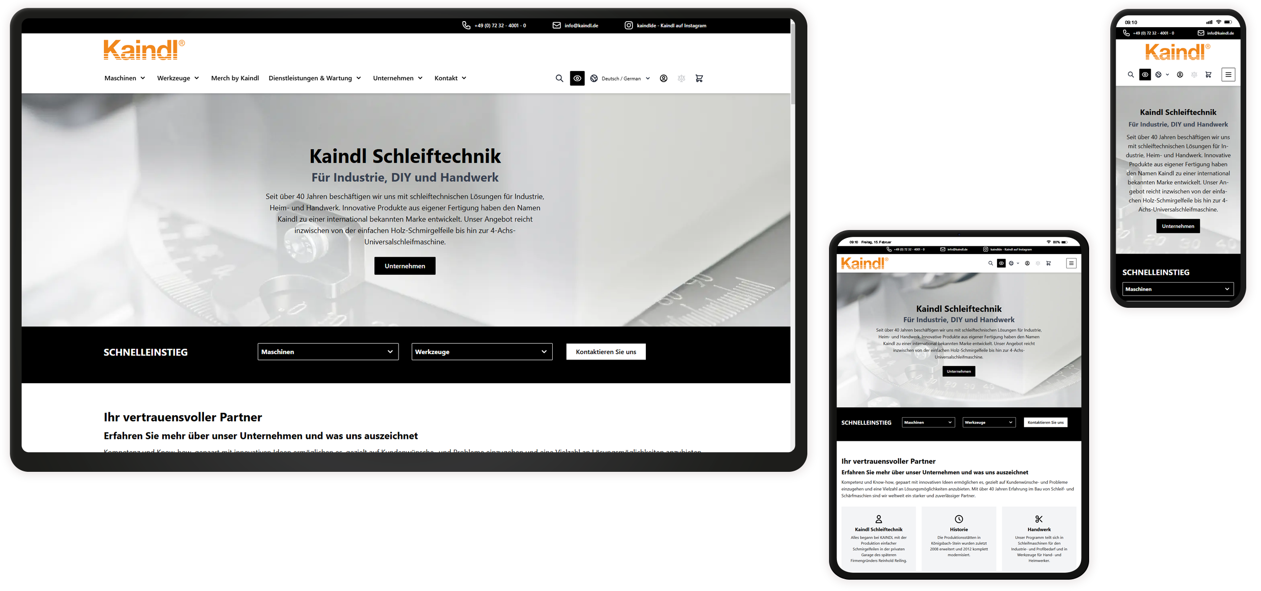 Im Rahmen eines notwendigen Magento-Upgrades sowie im Hinblick auf die Umsetzung der Anforderungen des Barrierefreiheitsstärkungsgesetz (BFSG) zur digitalen Barrierefreiheit entschloss man sich Ende 2024, das Frontend des Kaindl Webshops umfassend zu überarbeiten. Innerhalb weniger Monate überführte unser Team bestehende Funktionalitäten und implementierte diese auf Basis des Hyvä-Themes neu. Hyvä verfügt über einen modernen Technology-Stack, u.a. basierend auf AlpineJS/TailwindCSS, zeichnet sich durch eine hohe Performanz und Flexibilität aus und ist bereits grundlegend für die digitale Barrierefreiheit optimiert. Über einen begleitenden BITV-Selbsttest wurde weiterhin sichergestellt, dass die Vorgaben aus BITV 2.0 und WCAG 2.2 möglichst konsequent eingehalten werden. Durch die zusätzliche Komponente Hyvä-Checkout konnte das gesamte digitale Kaufprozess von der Recherche- und Produktauswahl bis hin zum komfortablen und schlanken Checkout auf neue Füße gestellt werden. Benutzer:innen des Kaindl Shops profitieren also nicht nur von der nun hergestellten digitalen Barrierefreiheit, sondern auch von einem deutlich verbesserten Einkaufserlebnis und durchgehend schnellen Reaktionszeiten der Website.
