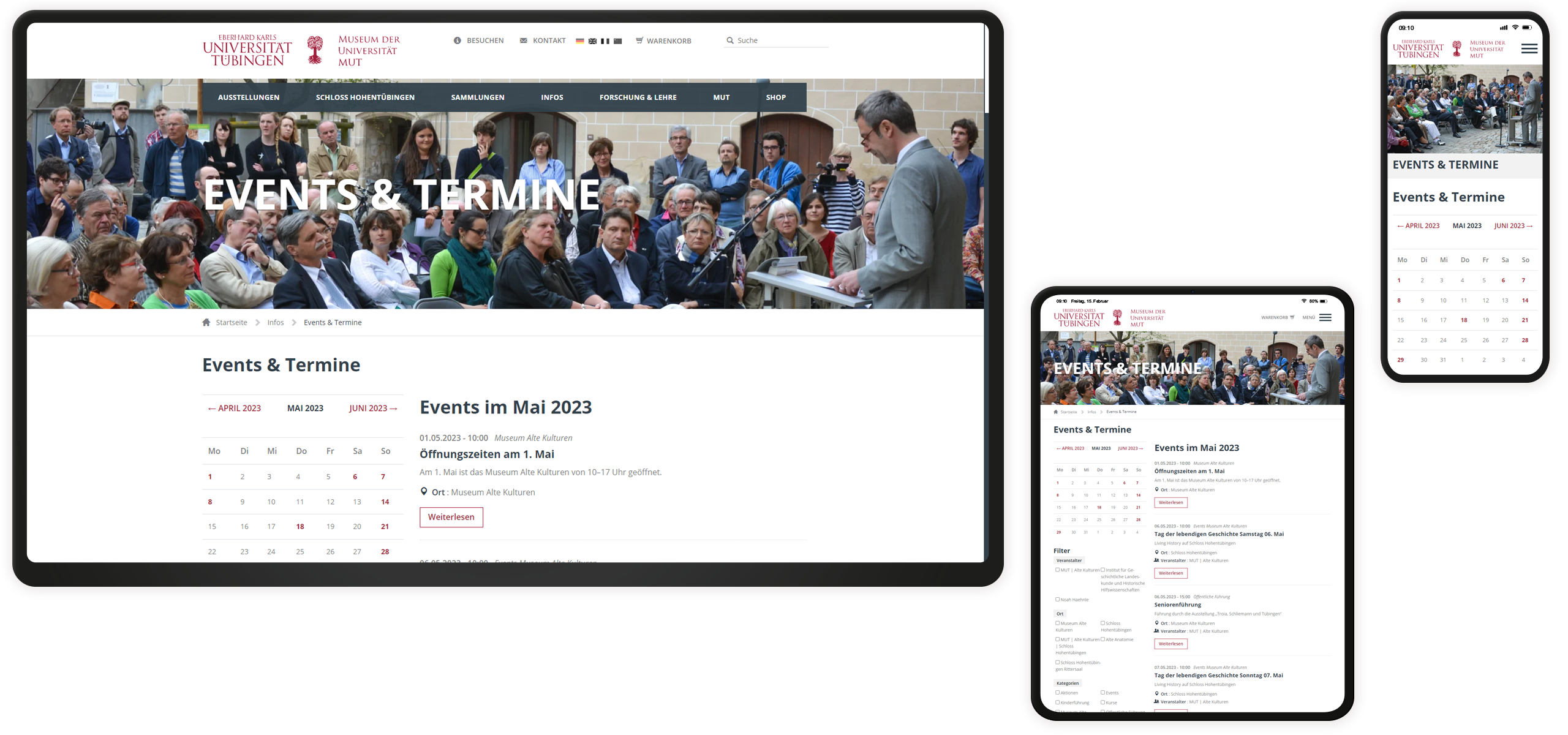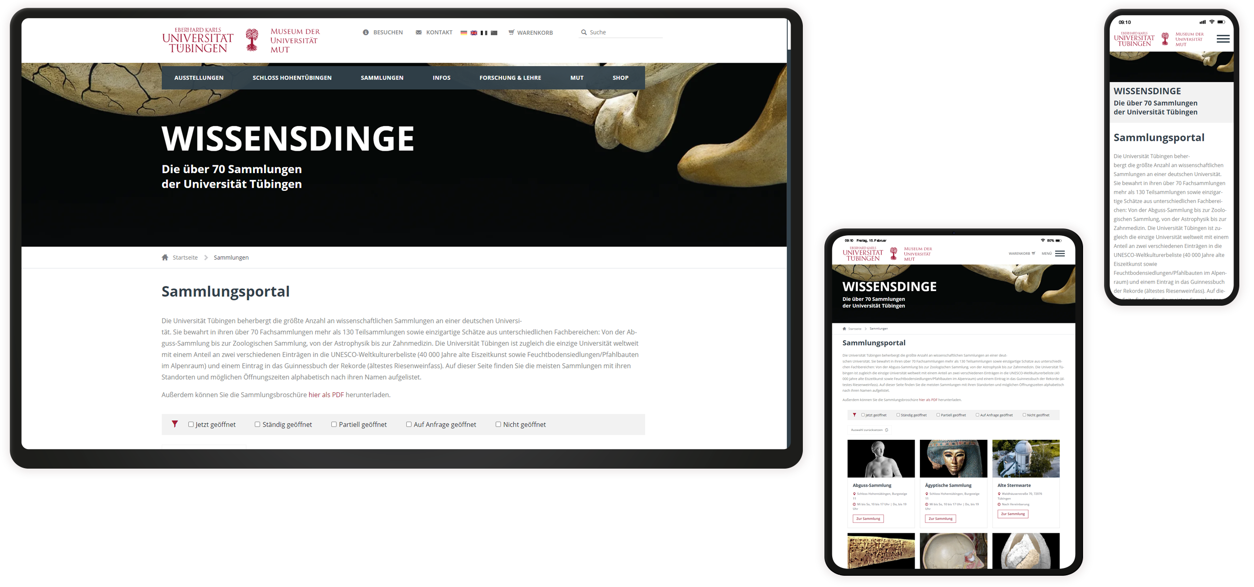 Das Museum der Universität Tübingen beauftragte uns mit dem Gesamtrelaunch seiner Museumswebsite. Dies umfasste die Konzeption des Designs unter Berücksichtigung der Corporate Identity der Universität Tübingen, die Einrichtung des TYPO3-Kernsystems sowie die Entwicklung und Anpassung mehrerer TYPO3-Erweiterungen.