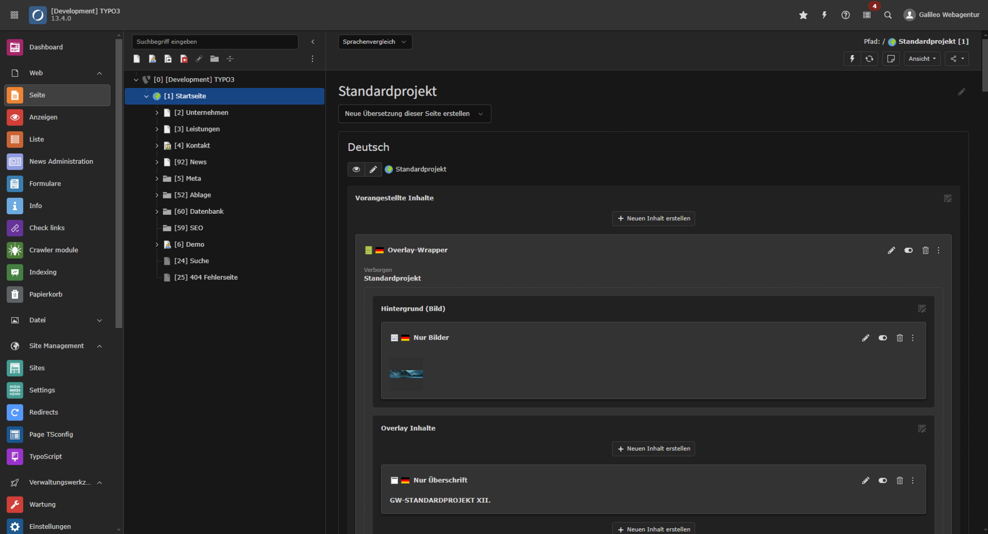 Das TYPO3-Backend unterstützt mehr als 60 Sprachen. Neu hinzugekommen sind nun Schottisch- und Irisch-Gälisch sowie Maltesisch. Außerdem ist ein right-to-left-Layout verfügbar, relevant für linksläufige Schriften wie Arabisch oder Hebräisch. Das neue Backend passt sich außerdem an Nutzerpräferenzen zum Light/Dark Mode an.